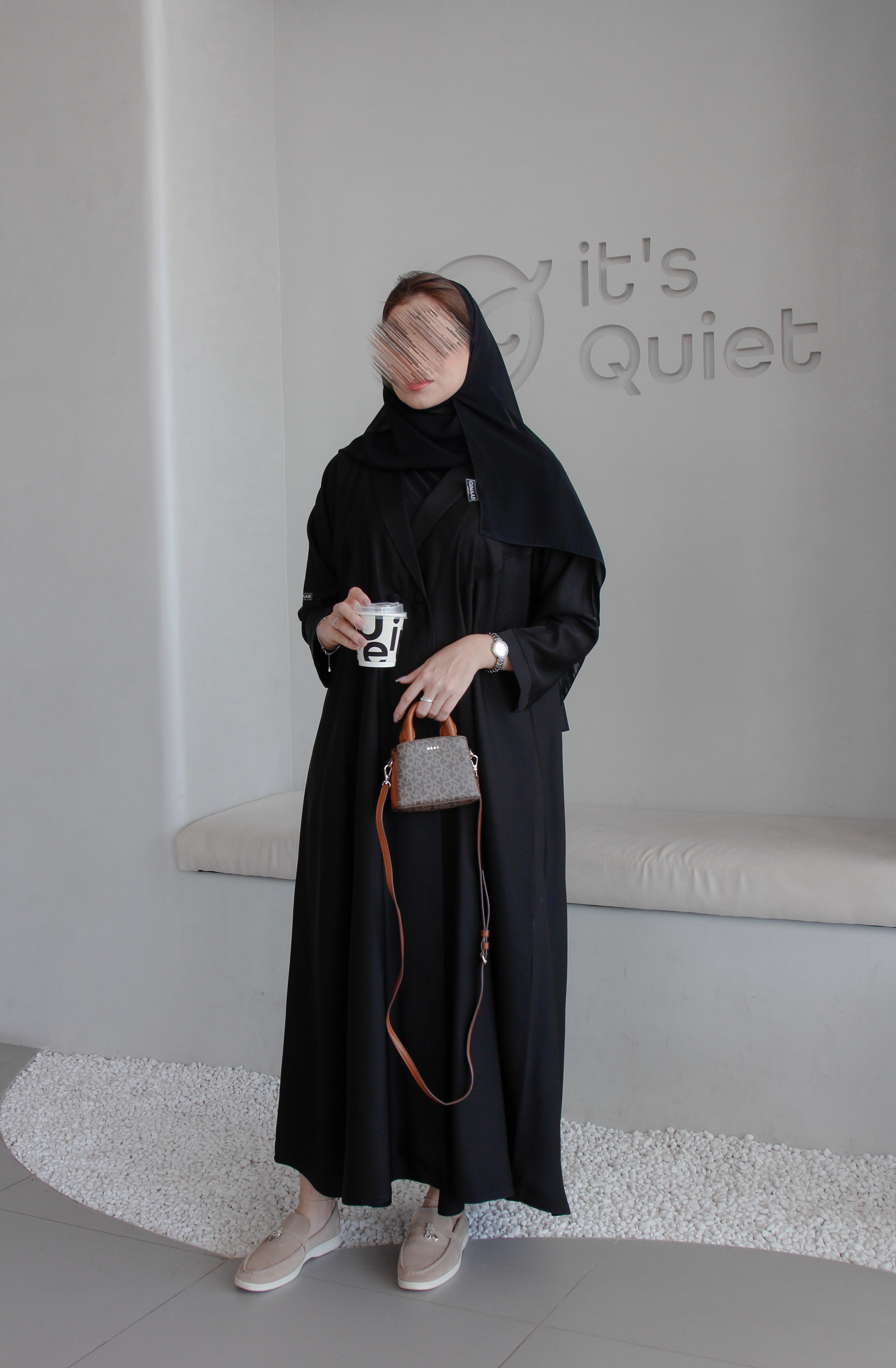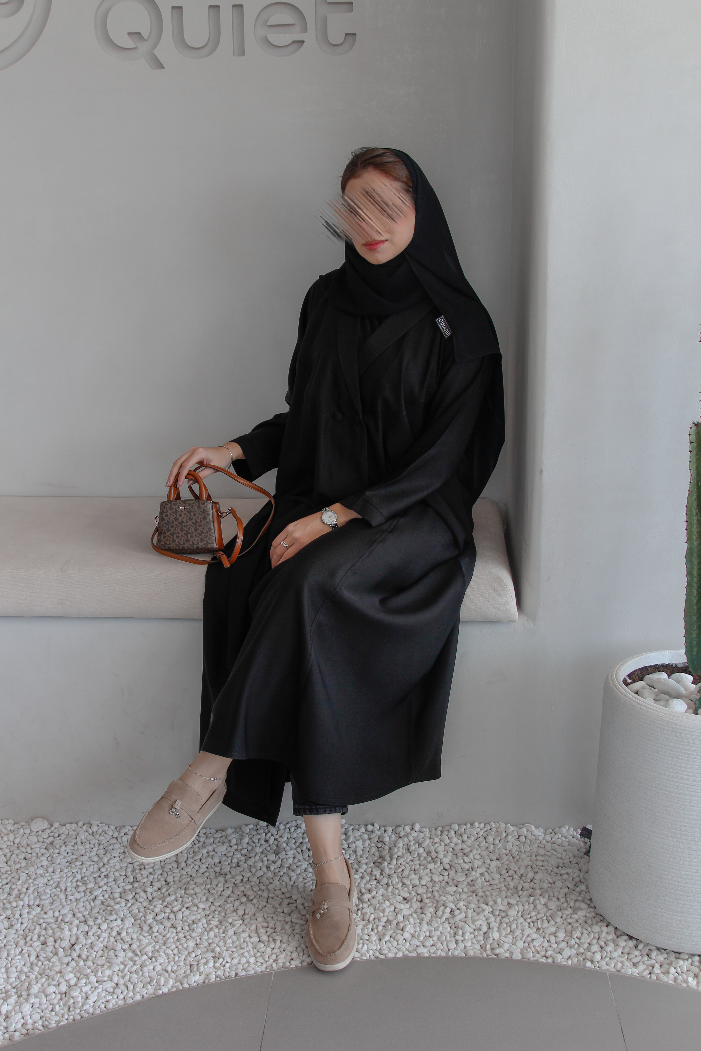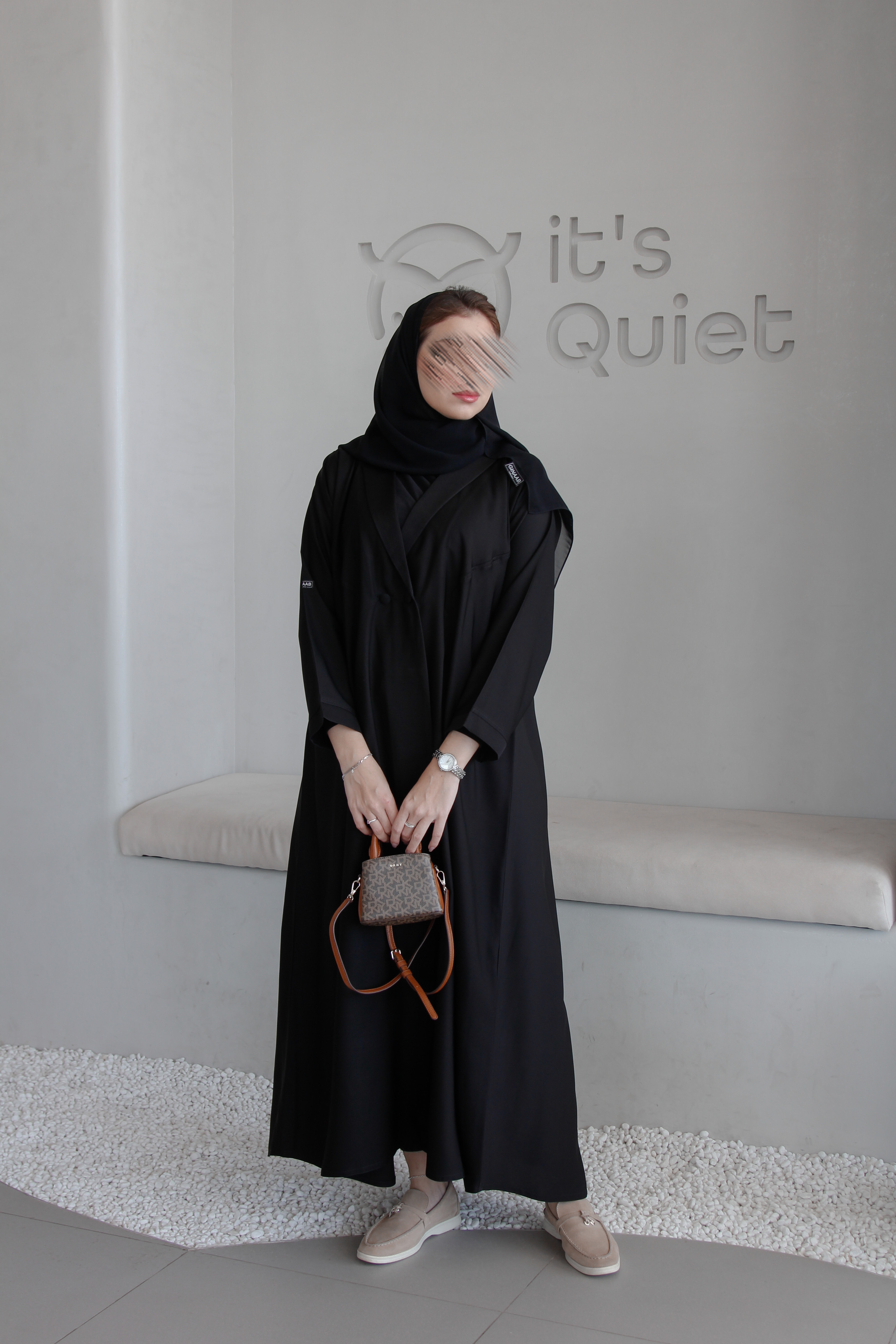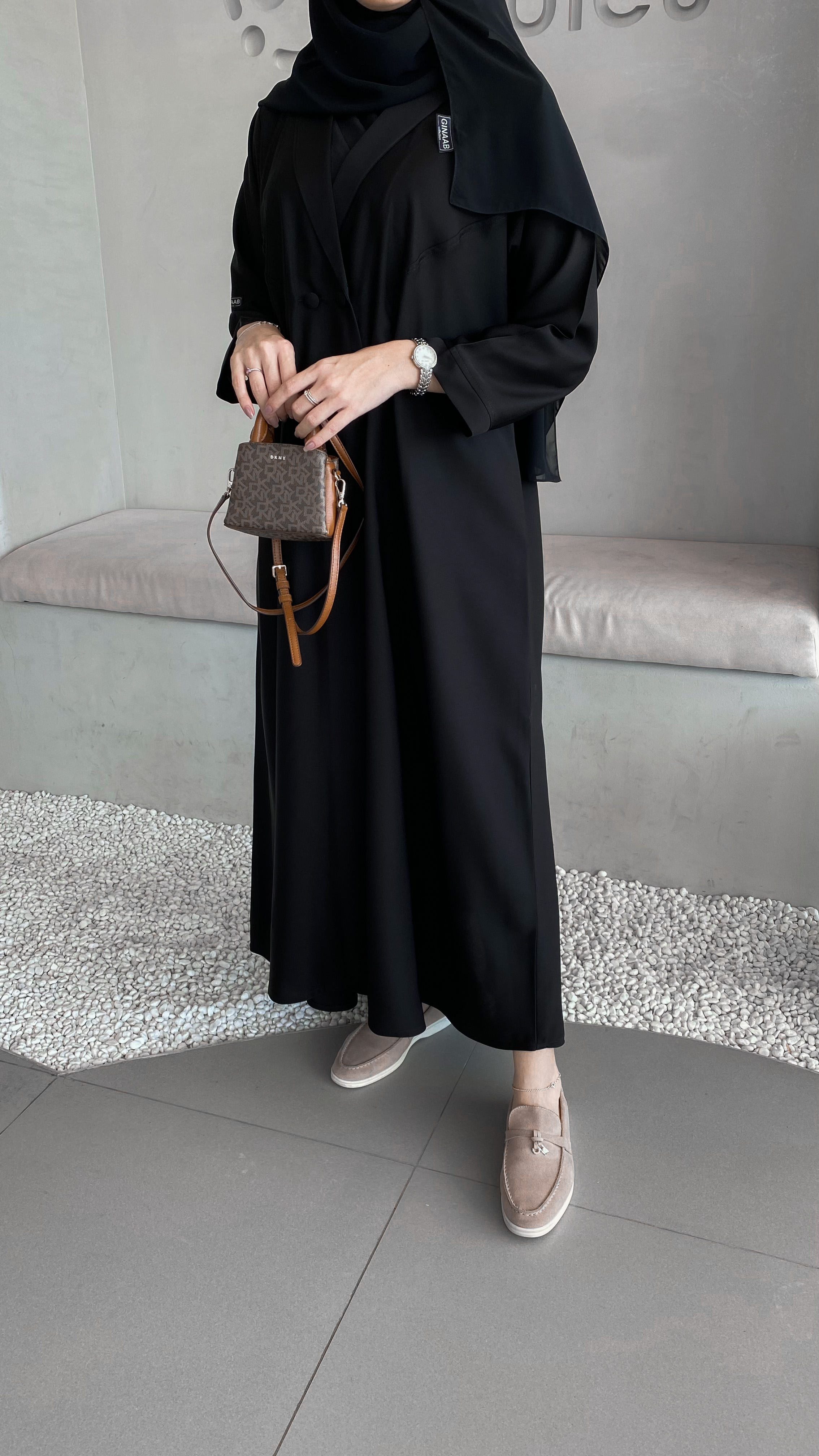 The abaya has only one button from the front, like the picture. If you want buttons to the end, please put a note in the note box. We can also make a piece to cover the chest area.