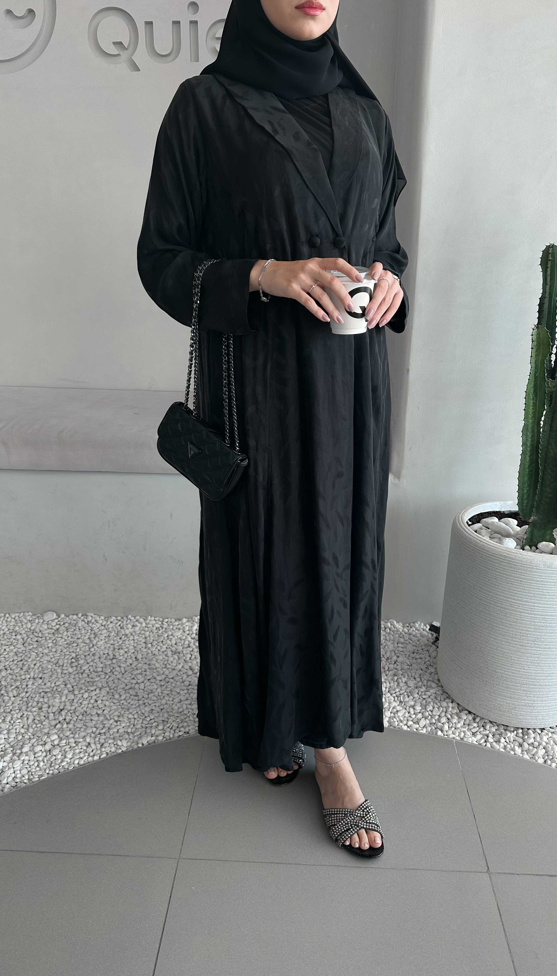The abaya has only one button from the front, like the picture. If you want buttons to the end, please put a note in the note box. We can also make a piece to cover the chest area.